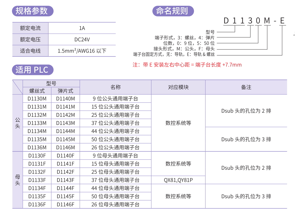 • 适合使用 Dsub 头的数控及 PLC 系统 ;